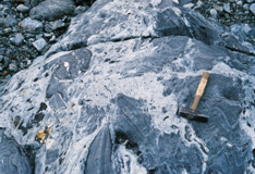 Figure caption: Caledonian migmatization Precambrian basement, NW Svalbard.